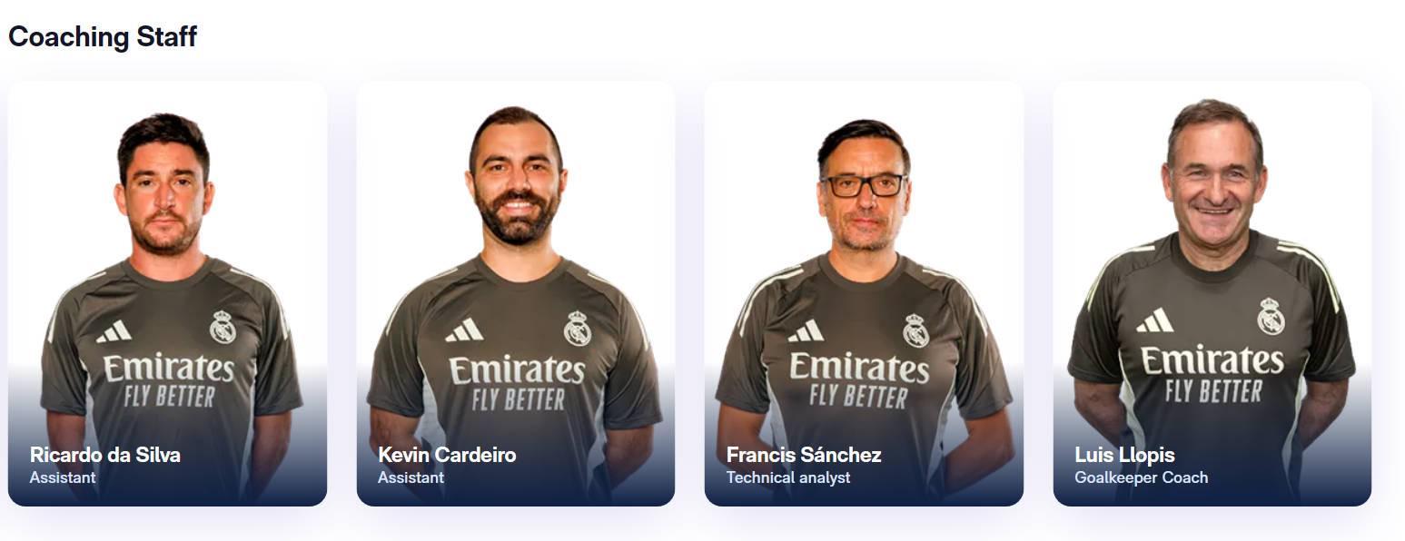 皇马一线队教练组完整名单: